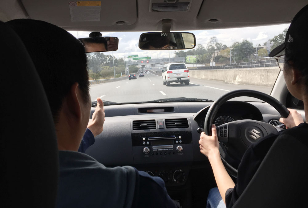 Chị học viên thứ 2 cũng người Việt. Chị ngồi vào phía tay lái, bắt đầu giờ tập. Anh Huỳnh chỉ đường và chị tăng tốc. Xe đi về hướng trường đại học Queensland…