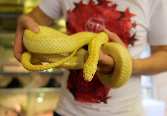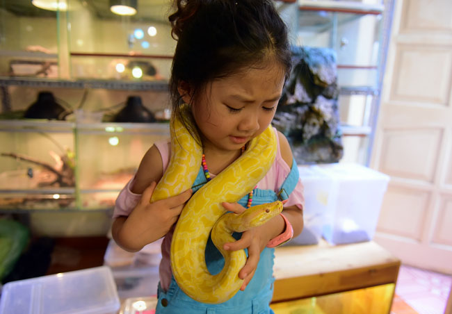 ... hay một chú trăn lớn đều có bề ngoài mang vẻ hung dữ nhưng thực chất theo anh Việt Anh, đây đều là các loại rắn, trăn cảnh đã được thuần hóa, không có độc nên rất hiền.