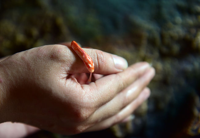 Bé Thanh luôn tỏ ra hào hứng khi được chơi đùa với những chú trăn cảnh bé nhỏ.