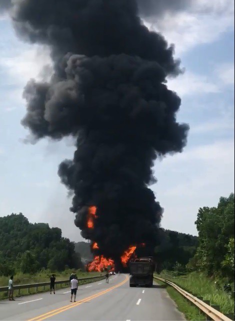 Old  Default Va chạm với xe con trên cao tốc, xe bồn chở dầu bốc cháy ngùn ngụt