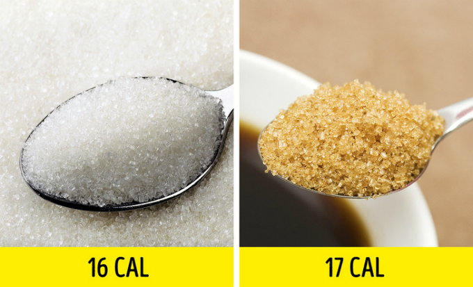 Đường trắng và đường nâu chứa lượng calories tương đương nhau.