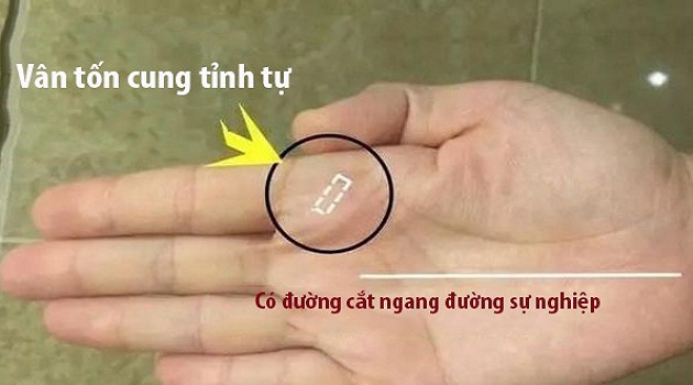 Phía dưới ngón tay trỏ có vân tốn cung tỉnh tự và có đường cắt ngang đường sự nghiệp