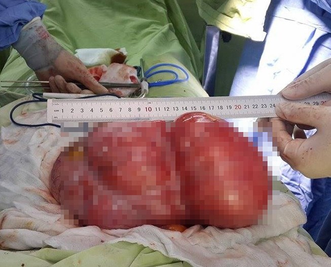 Ekip quyết định mổ từ lưng, giải phóng chèn ép, bóc tách lấy sạch khối u kèm theo lấy một phần thân các đốt sống từ T9 đến T12 bị mủn nát. Phần còn lại của đốt sống còn khá nhiều nên không cần phải thay thân đốt sống. Ca mổ kéo dài hơn 5 giờ, khối u lấy ra có kích thước lên tới 12x5cm.