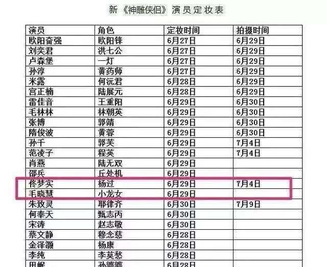 Cho đến khi bảng phân vai được tung ra thì vai Dương Quá lại được giao cho một nam diễn viên trẻ khác là Đồng Mộng Thực.
