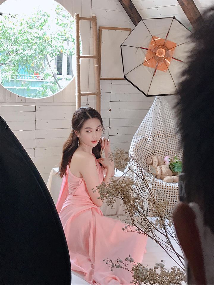 Cô hay chụp những bộ ảnh váy nữ tính điệu đà.
