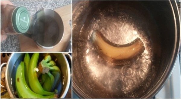 + Cho nước vào nồi, đun đến khi nước sôi tim thì bỏ nguyên trái chuối vào.