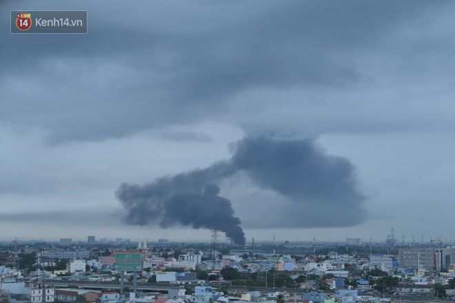 Do cháy tại nhà xưởng, các vật liệu dễ cháy gây khói nghi ngút.