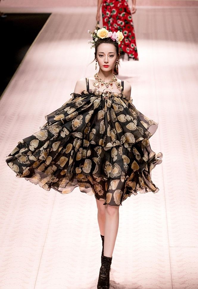 Đây đã là lần thứ 2 Địch Lệ Nhiệt Ba sải bước trong show của D&G.
