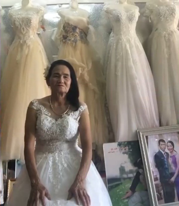 Cụ bà trong chiếc váy cưới hiện đại