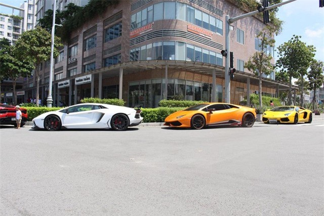 Hàng loạt siêu xe đủ màu sắc của các đại gia Sài Gòn đã có dịp tụ tập tại một khu đô thị ở TP.HCM.