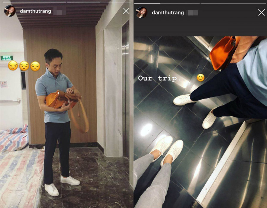 Cường Đô La diện đồ đôi, xách túi giúp Đàm Thu Trang.