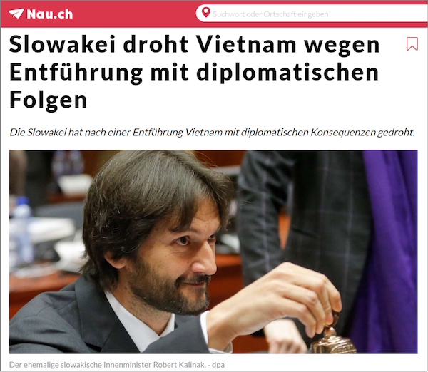 Hôm qua ngày 2/10/2018 tờ Pravda.sk của Slovakia đưa tin Thủ tướng Slovakia đe dọa Việt Nam sẽ bị các hậu quả về ngoại giao do vụ bắt cóc Trịnh Xuân Thanh gây ra. Sau đó Hãng Thông tấn DPA của Đức cũng đã đưa tin dựa vào bài báo của tờ Pravda.sk
