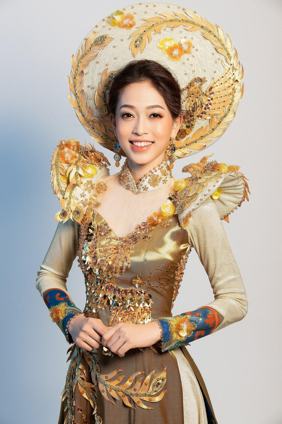 Á hậu Phương Nga sẽ diện bộ trang phục truyền thống của Việt Nam trong cuộc thi sắc đẹp quốc tế. Bộ đồ vô cùng ấn tượng với hình ảnh chim Phụng. Tông màu vàng cổ xưa biến bộ đồ trở nên vô cùng sang trọng và tinh tế.