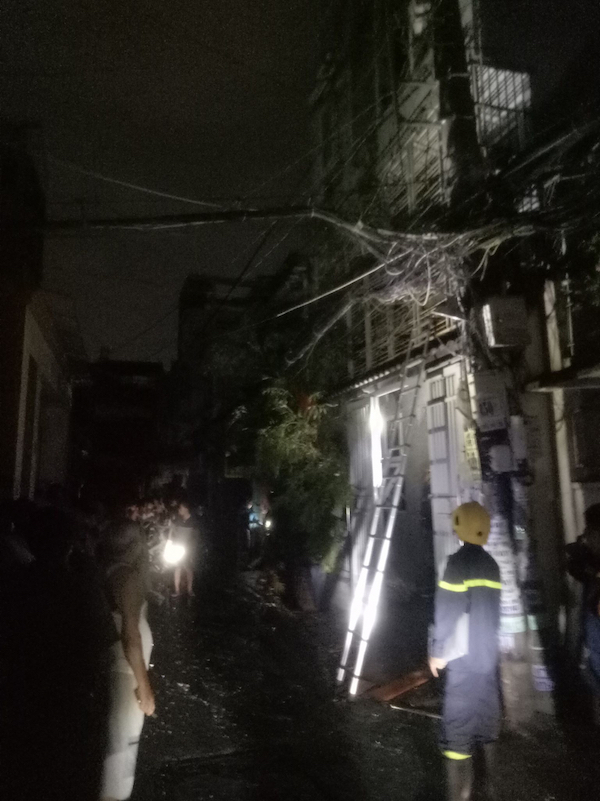 Nhân chứng cho biết, tại thời điểm trên, ngôi nhà cao 4 tầng bốc cháy ngùn ngụt nên hàng chục người dân tháo cháo ra phía đường để trình báo cơ quan chức năng.