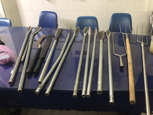 Vào cuộc điều tra, cảnh sát bắt hơn 10 người, thu giữ nhiều mã tấu, chĩa, cùng nhiều hung khí tự chế khác.