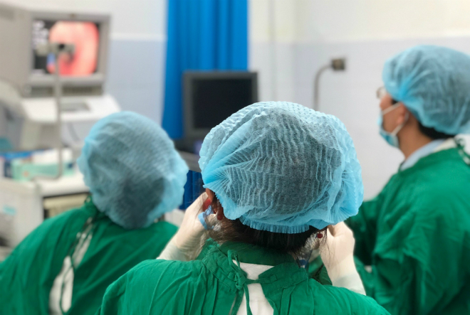 Các bác sĩ nội soi gắp dị vật. Ảnh bệnh viện cung cấp.