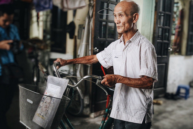 Mỗi tuần cụ Linh đều tự đạp xe đi học