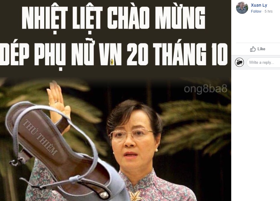 Một sự kiện đang gây xôn xao trên mạng xã hội hôm 20/10, đó là một người phụ nữ đã dũng cảm ném dép về phía bà Nguyễn Thị Quyết Tâm- chủ tịch hội đồng nhân dân TPHCM- trong một cuộc họp giữa lãnh đạo thành phố và người dân Thủ Thiêm