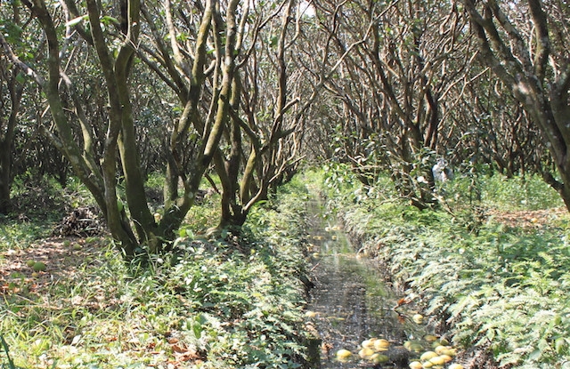 Vườn bưởi của người dân xơ xác sau đợt triều cường. (Ảnh: ****)
