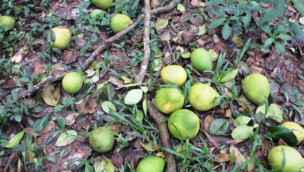 Bưởi rụng do cây chết hàng loạt. (Ảnh: Một Thế Giới)