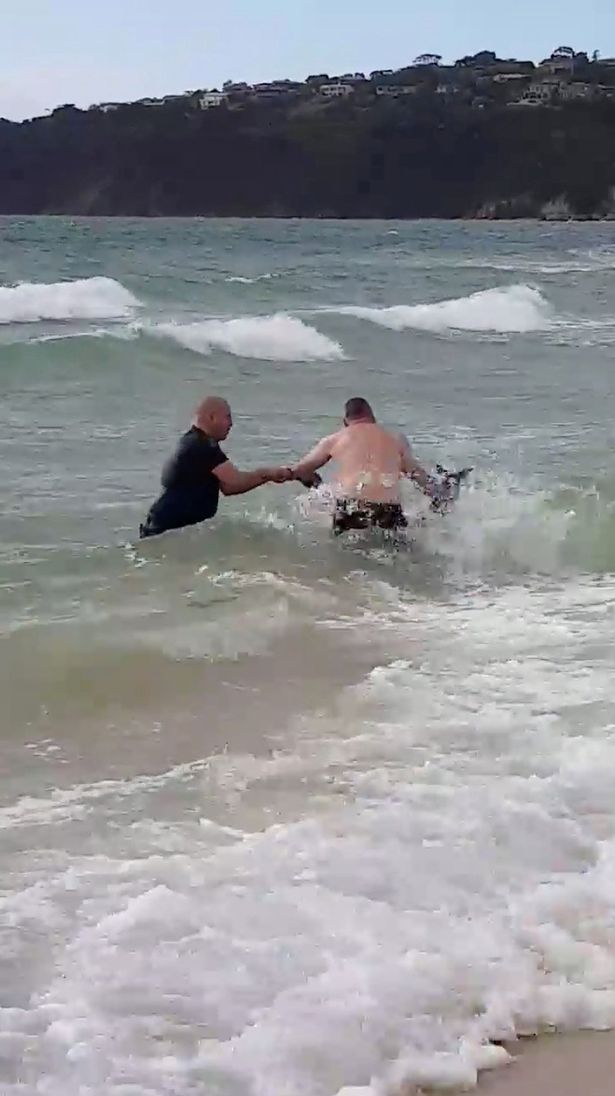 Theo Daily Star, hai sỹ quan cảnh sát không ngần ngại cởi áo, nhảy xuống biển kéo kangaroo vào bờ, trước sự chứng kiến của nhiều người.