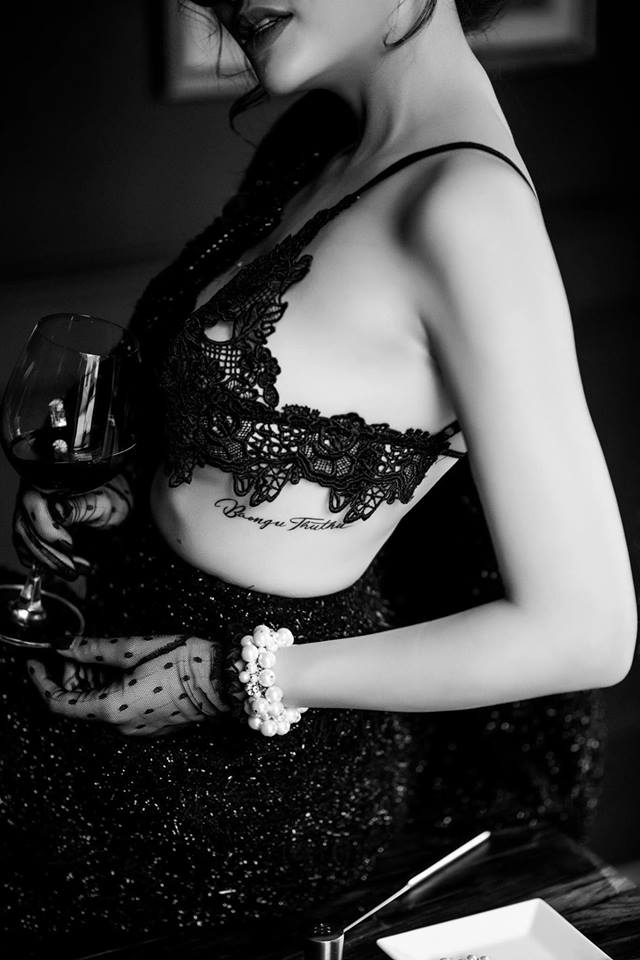 Chia sẻ với chúng tôi, Phan Hoàng Thu cho biết, trước hình xăm câu quote này, cô cũng đã có một hình xăm ở vị trí khá gợi cảm.