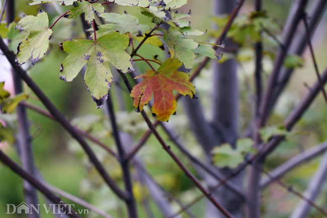 Những cây phong ở khu vực trước tòa nhà Vincom trên đường Nguyễn Chí Thanh khiến cho nhiều người đi đường thích thú.