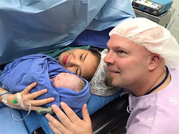 Vợ chồng Nana trong ngày đón con chào đời tại một bệnh viện ở Thái Lan.