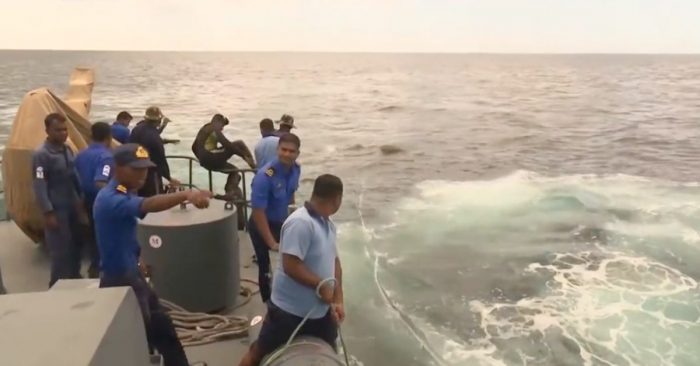 Một sinh vật khổng lồ trôi nổi trên bờ biển Tây Bắc được lực lượng hải quân Sri Lanka phát hiện ra, mà dường như sinh vật khổng lồ này đang phải vật lộn với dòng chảy mạnh mẽ đang phải vật lộn để giữ mình nổi trên mặt biển.