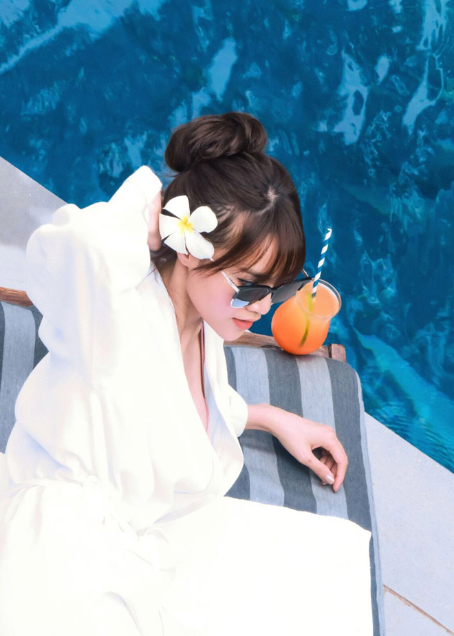 Đây là lần đầu tiên Lan Ngọc khoe trọn số đo ba vòng nóng bỏng với bikini bên bể bơi. Anh em cứ tròn mắt trước tấm thân vô cùng gợi cảm, hấp dẫn của cô.