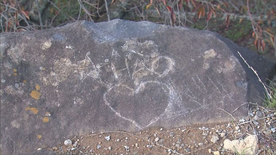 Theo thông tin từ Ban Quản lý văn hóa thuộc di tích thành cổ Yonago, khoảng 16 giờ ngày 26/10, một nhân viên bộ phận văn hóa TP Yonago phát hiện các ký tự 'A', 'HÀO' cùng hai ký hiệu hình ngôi sao và trái tim trên một phiến đá thuộc khu di tích.