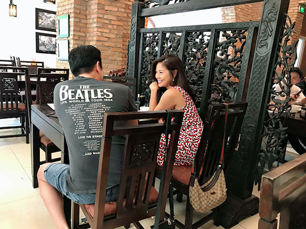 Cặp đôi chọn một góc vắng người trong nhà hàng, ăn mặc bình thường và không trang điểm