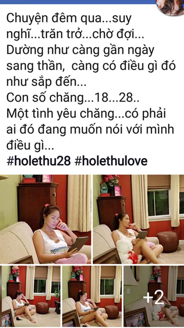 Dòng trạng thái mới nhất của Hồ Lệ Thu trên facebook cá nhân.