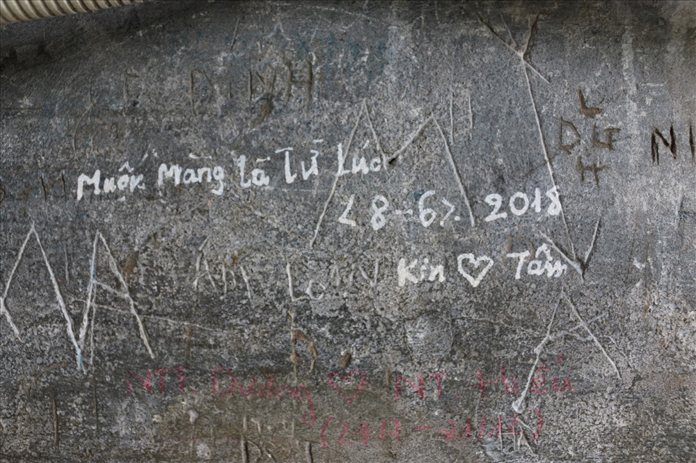 Xung quanh bốn mặt Cột cờ Hà Nội chi chít các vết tích nguệch ngoạc.