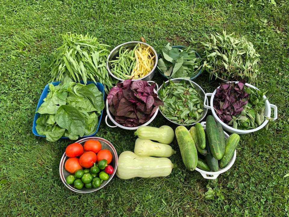 Thành quả sau một lần thu hoạch của khu vườn gia đình chị Ngọc.