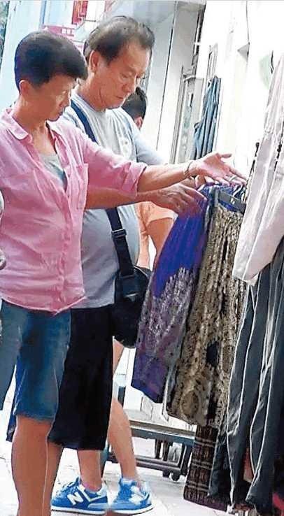 Vợ chồng Lý Tu Hiền dạo phố, ngắm nghía quần áo vỉa hè.