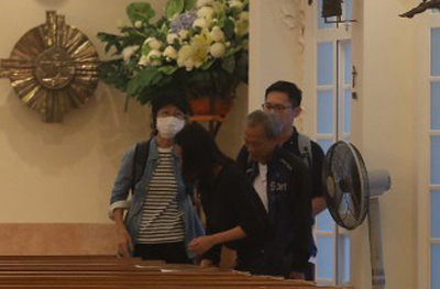 Chị gái của Lam Khiết Anh (đeo khẩu trang) đến nhà thờ từ sớm để lo chuyện hậu sự cho em.