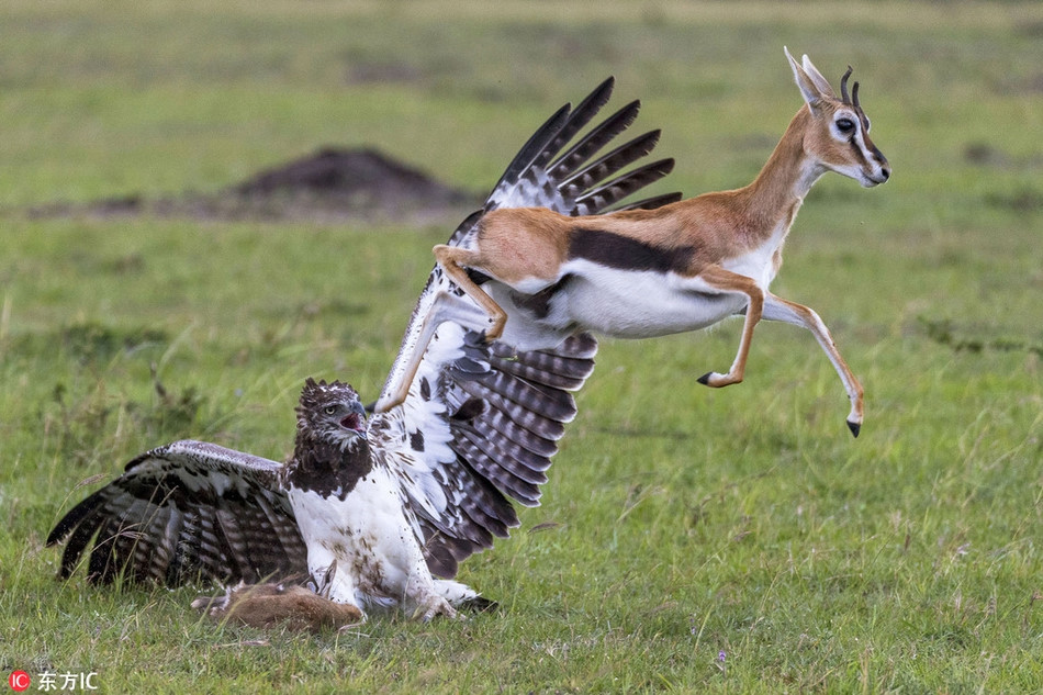 Hình ảnh đó khiến linh dương mẹ gần như phát điên, nó không màng tới nguy hiểm, bất chấp tất cả, lao tới con đại bàng khổng lồ và dùng mọi kỹ năng chiến đấu mình biết để tấn công kẻ tử thù to lớn.