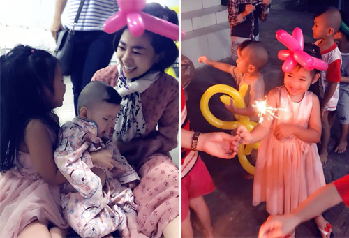 Mai Phương và con gái vui cùng các bé trong chuyến thiện nguyện.