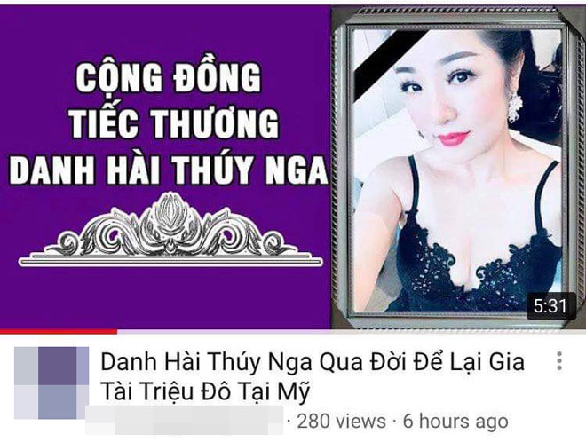 Mới đây, có một clip trên youtube chia sẻ về việc "Danh hài Thúy Nga qua đời để lại gia tài triệu đô tại Mỹ", "Cộng đồng tiếc thương danh hài Thúy Nga". Thông tin này khiến người hâm mộ Thúy Nga vô cùng lo lắng, hoang mang.