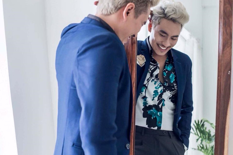 Chiếc áo sơ mi hoa lá bên trong khiến anh bớt đi vẻ nam tính.