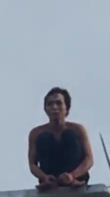 Trong lúc người thân đưa thanh niên ngáo đá đi bệnh viện. Khi taxi vừa mở cửa, thanh niên này bất ngờ trèo được lên nóc trụ sở Kho bạc Nhà nước thị xã La Gi (Bình Thuận) ngồi chơi, mãi không chịu xuống.