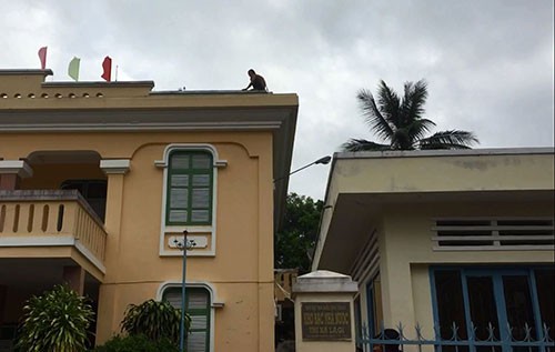 Tuy nhiên, khi taxi vừa mở cửa, thanh niên này đã chạy qua đường và leo lên nóc nhà của trụ sở Kho bạc Nhà nước thị xã La Gi ngồi không chịu xuống.