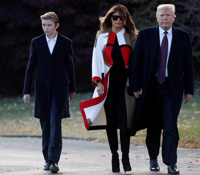 Vợ chồng Trump nắm tay tình tứ khi con trai Barron đi bên cạnh.