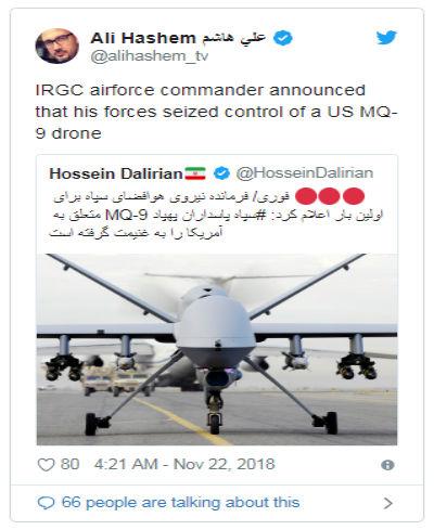 Xác nhận của IRGC cho biết, lực lượng này đã dùng phương tiện tác chiến tối tân ép hạ cánh thành công 1 chiếc MQ-9 của Không quân Mỹ. Tuy nhiên, nguồn tin này không tiết lộ địa điểm cụ thể diễn ra vụ bắt giữ này.