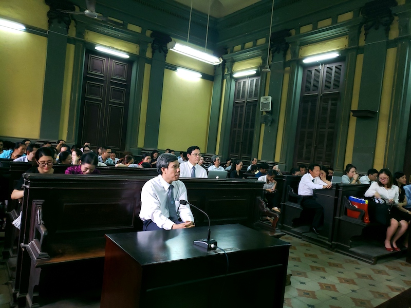 Toàn cảnh phiên xét xử sơ thẩm đối với 6 bị cáo nguyên là nhân viên Ngân hàng TMCP Xuất nhập khẩu Việt Nam.