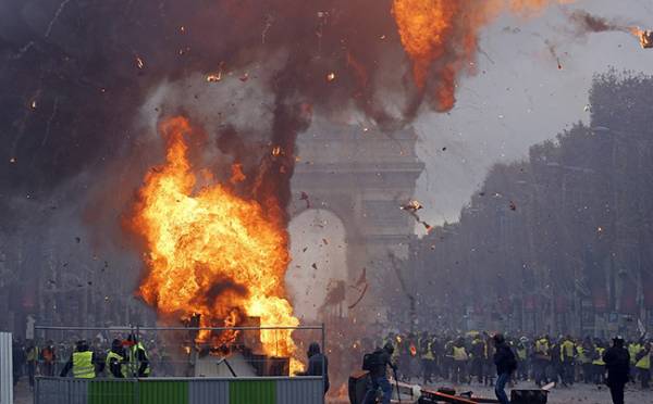 Lửa cháy ngùn ngụt, tiếng la hét của người biểu tình phẫn nộ trong khi lực lượng chức năng gồng mình xử lý bằng súng nước và hơi cay. Thủ đô hoa lệ Paris của Pháp trong ngày cuối tuần qua ầm ỹ, tan hoang như vùng chiến sự.
