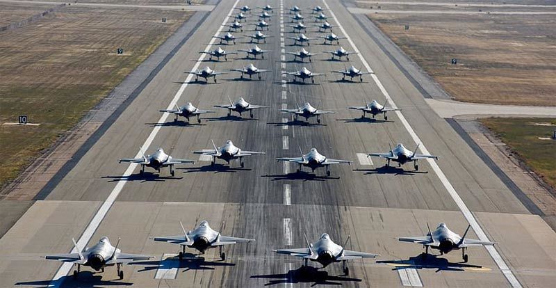 Dàn 35 chiếc F-35 trong bài tập "Elephant Walk" ở căn cứ không quân Hill (Ảnh: Không lực Mỹ)