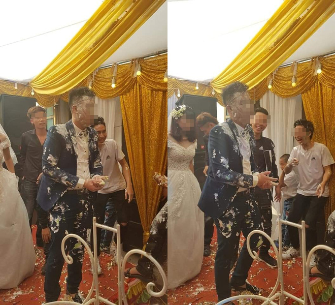 Mới đây trên mạng XH đã xuất hiện đoạn clip diễn ra hôn lễ của 1 cặp đội trong không khí náo loạn trò đùa của đám bạn thân. Chú rể đã bị họ tấn công bằng bánh kém khiến không ai có thể nhận ra nổi. Nhiều ý kiến cho rằng đây là trò đùa không phù hợp trong ngày cưới. Clip ghi lại toàn cảnh cô dâu, chú rể nhận quà cưới của nhóm bạn thân trên sân khấu. Với phương châm quà độc đáo, tặng theo cách không giống ai, bạn bè của chú rể mang cả nồi, dao, ấm, chảo,... thậm chí cả cây lau nhà lên tặng cặp đôi.