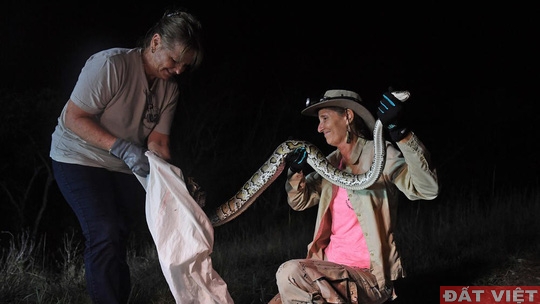 Bà Donna Kalil (phải) trong một chuyến săn trăn Miến Điện ở hạt Miami – Dade, bang FloridaẢnh: South Florida Sun Sentinel